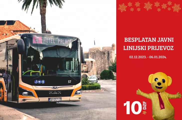 odlukom Grada Dubrovnika, a kako je već komunicirano s javnošću, za vrijeme trajanja Dubrovačkog zimskog festivala (02.12.2023.-06.01.2024), počev od 17:00h, omogućen je besplatan prijevoz svim korisnicima usluga na svim gradskim linijama i onima koji ukrcaj ili iskrcaj vrše na širem području Grada Dubrovnik (do i od Brsečina te Gornjih sela).