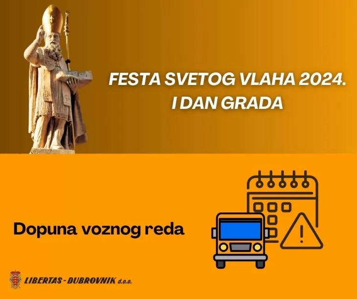 Povodom proslave Feste sv. Vlaha, Libertas Dubrovnik uvodi dodatne polaske na sljedećim linijama: